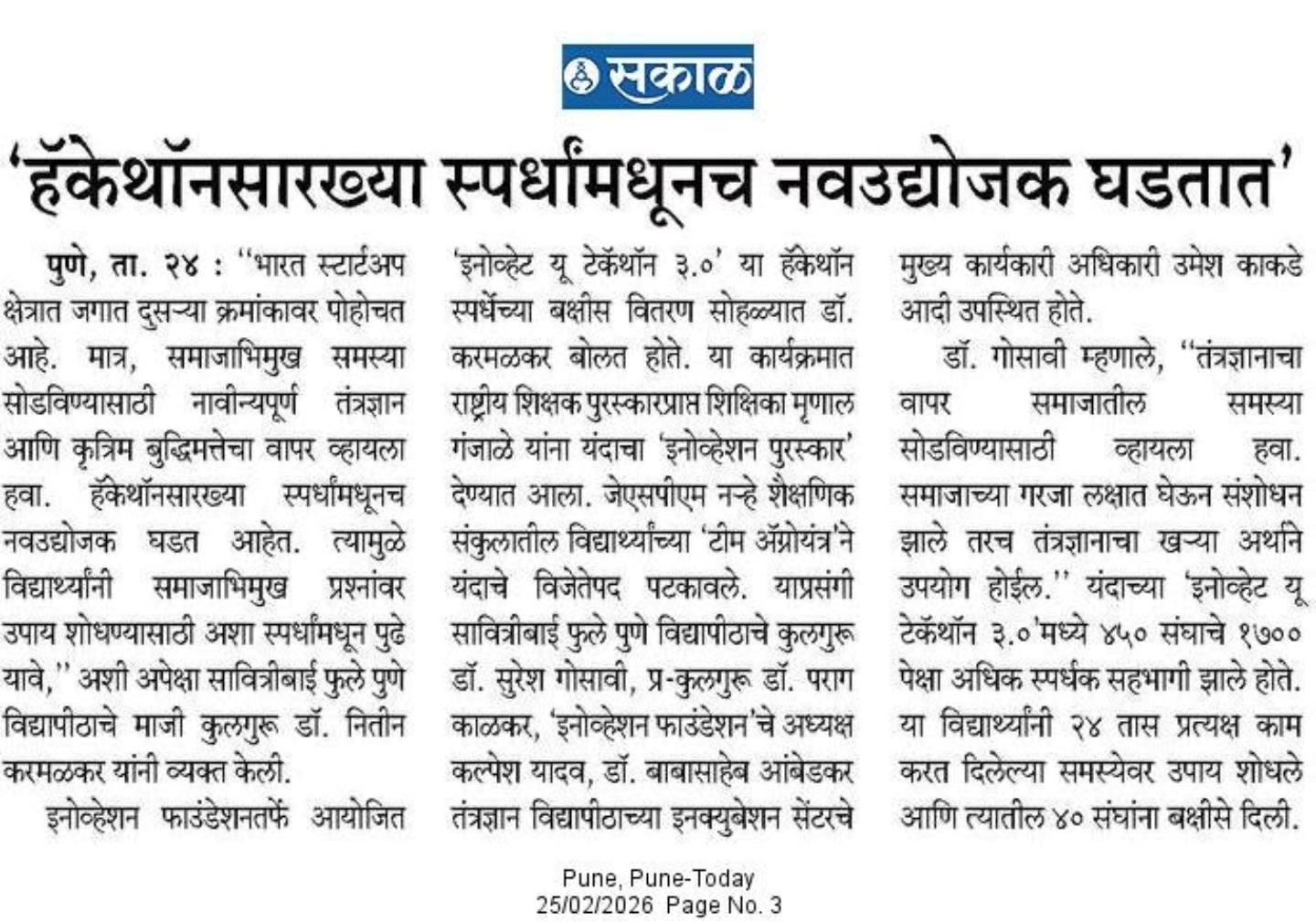 What started as a platform for coding has evolved into Maharashtra’s most significant student innovation movement. Led by Kalpesh Yadav, the Innovation Foundation continues to prove that when you give young minds a real-world challenge, they don’t just find a solution—they create the future. This year, Techathon 3.0 focused on Social Issues, challenging our participants to look beyond the screen and solve the hurdles facing our communities today.