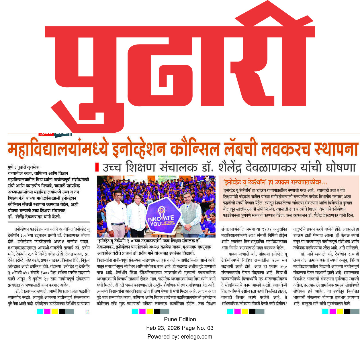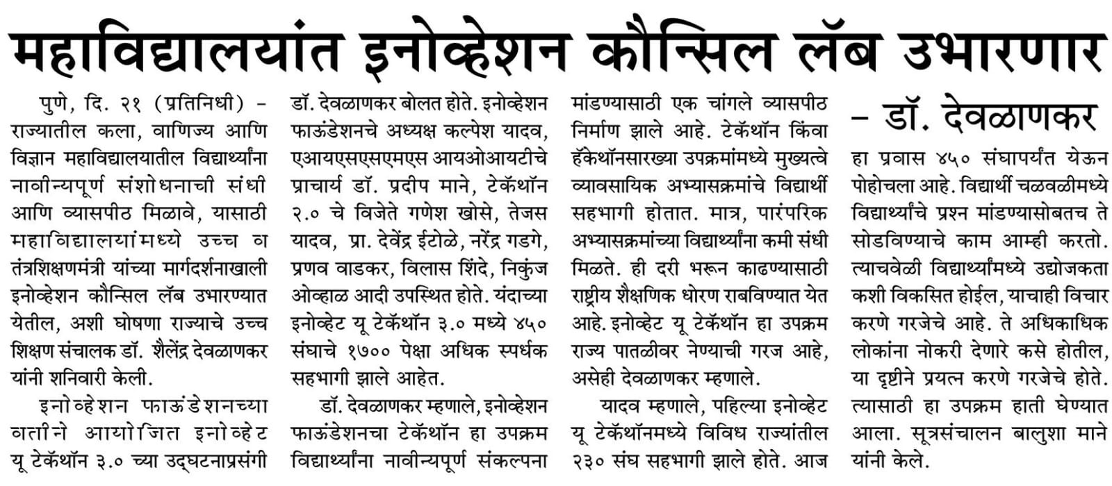 "To provide students from all traditional Arts, Commerce, and Science colleges with greater research platforms. Innovation Council Labs will soon be established in 1,132 aided colleges across the state. Techathon 3.0 has become a strong pillar for nurturing researchers and socially relevant research."